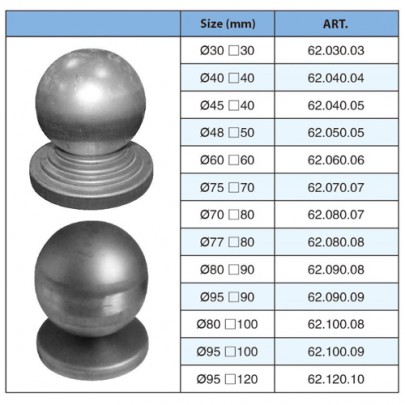 62.030.03 - 62.120.10 Wrought Iron Post Caps Hollow Ball With Square Base Caps