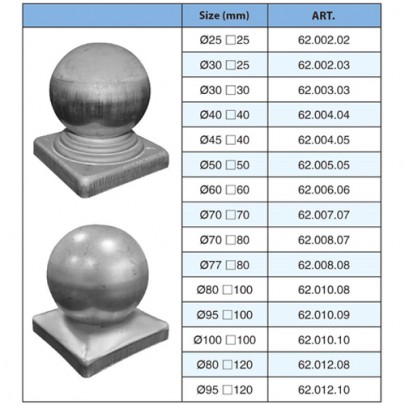 62.002.02 - 62.012.10 Wrought Iron Post Caps Hollow Ball With Square Base Caps
